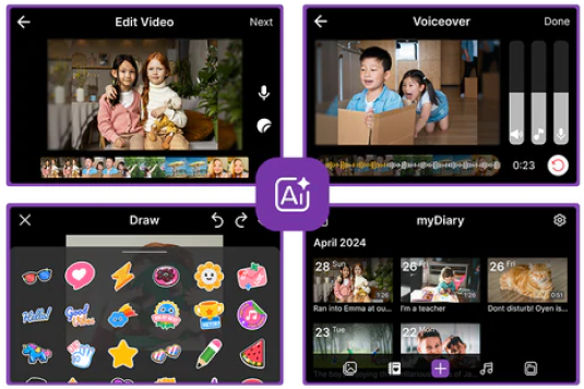孩子愛玩科技,但「myDiary」讓他們做的不只是玩樂!透過拍照、錄影與書寫,孩子能表達自己、認識情緒,並同時: