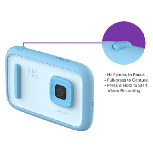 myFirst Camera 50 的雙功能快門按鈕支援半按與全按操作,讓孩子學習專業攝影技巧,拍出更精美、更有趣的照片。